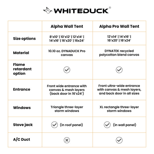 THE VERSATILE, 4-SEASON TENT The Alpha PRO Wall Tent arrives outdoors ready, with the poles, angle kits, frame, floor and tool kit included with your purchase. It’s the last wall tent you will ever buy. YOUR...Regular price $2,507.00Regular price $2,507.00 -
