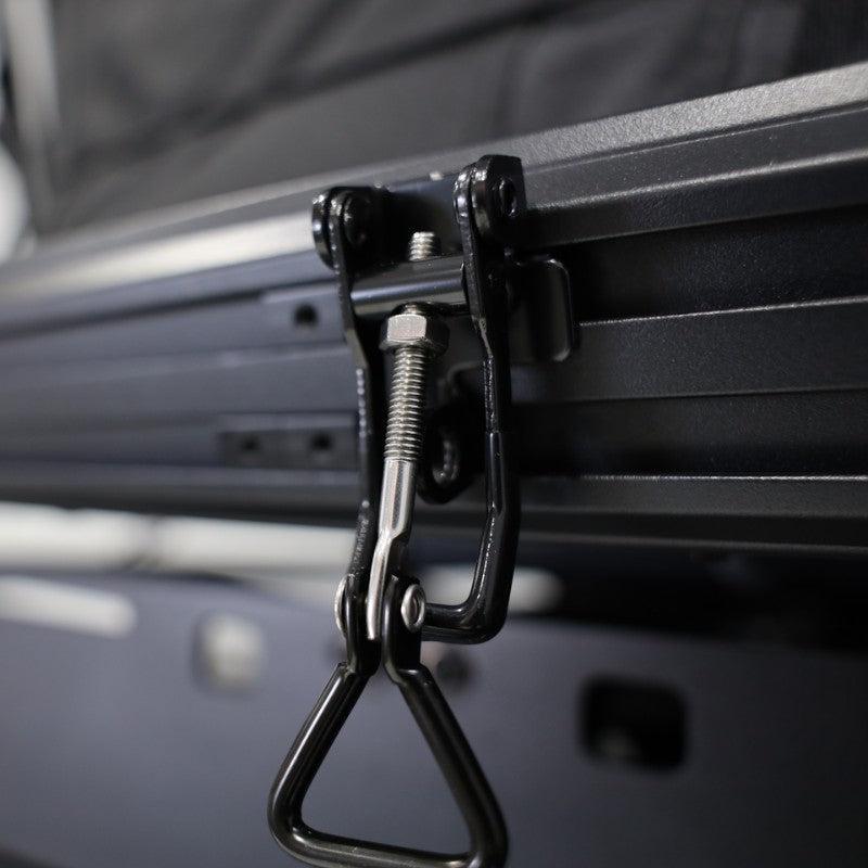 - Optional Cross Bars and Awning Brackets - Additional storage options on the tent's roof and side mounting channels.